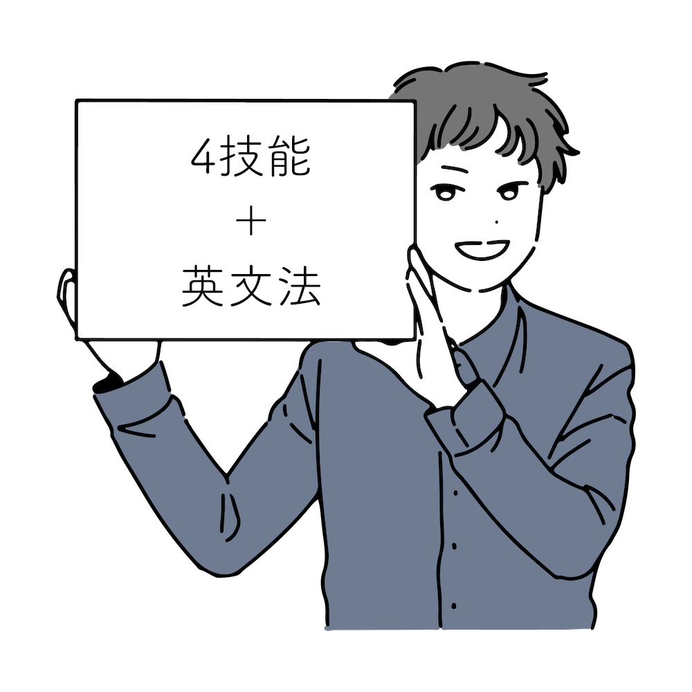 英文法に加え、読む・書く・聞く・話すの4技能をレベル帯に応じて学習していきます。